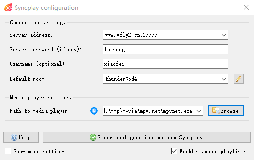 Click Store configuration and run Syncplay to start